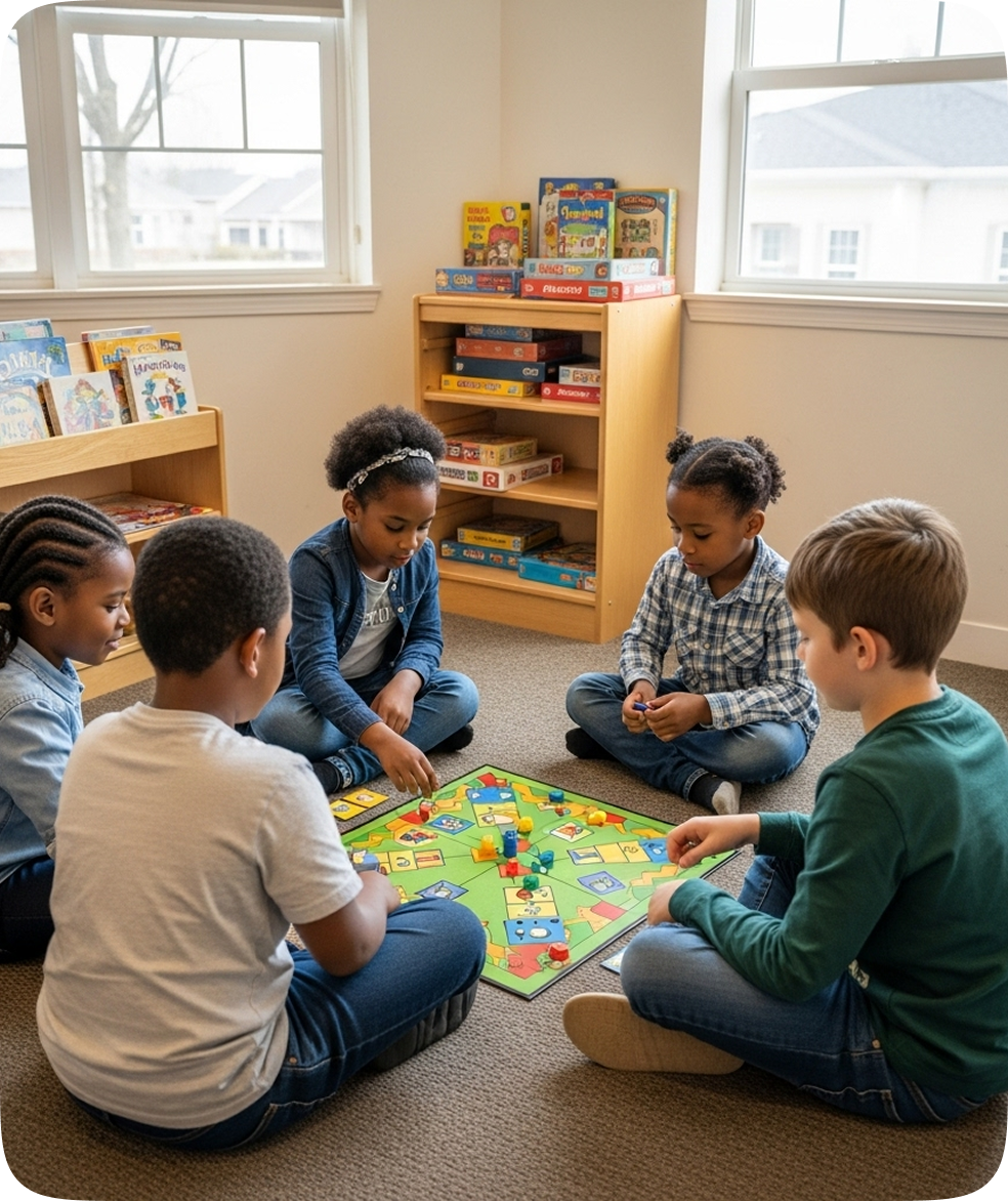 Children engage in themed group games, STEM challenges, and age-appropriate discussions. Our emphasis is on teamwork, respect, and friendship-building through guided activities.